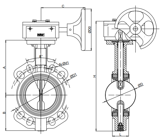 立即咨詢渦輪對夾蝶閥外形圖:
