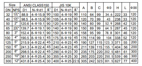 美標(biāo)150LB 日標(biāo)10K外形尺寸表:
